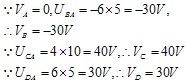 【例】如圖所示電路,以B點為參考點,求各點的電位;再以A點為參考點,求各點的電位。
