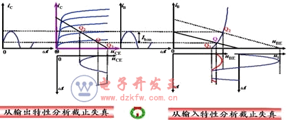 與靜態工作點的位置和輸入信號的幅值有關。     (一)截止失真:靜態工作點設置太低,靠近截止區。                      消除截止失真的方法:   提高靜態工作點的位置,適當減小輸入信號ui的幅值   (二)飽和失真:靜態工作點設置太高,靠近飽和區。
