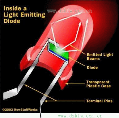 基本上,發光二極管只是一個微小的電燈泡。但不像常見的白熾燈泡,發光二極管沒有燈絲,而且又不會特別熱。它單單是由半導體材料里的電子移動而使它發光。