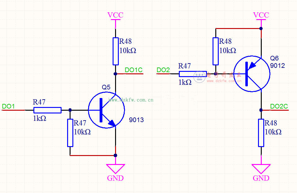 2.基極根據(jù)PNP或者NPN管子加上拉電阻或者下拉電阻。