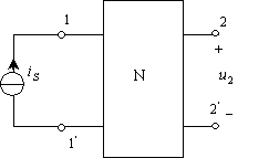 互易定理2內容為:對于一個線性無源網絡N,外加激勵電流與網絡響應電壓互換位置時,響應電壓相同,如圖2所示,即