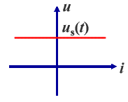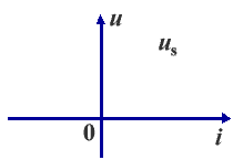 3)理想電壓源的電壓、電流關(guān)系 (1)電源兩端電壓由電源本身決定,與外電路無關(guān);與流經(jīng)它的電流方向、大小無關(guān)。 (2)通過電壓源的電流由電源及外電路共同決定。 伏安關(guān)系曲線如右圖示: |