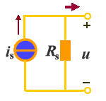 考慮實際電流源有損耗,其電路模型用理想電流源和電阻的并聯(lián)組合表示,這個電阻稱為電流源的內(nèi)阻。 |