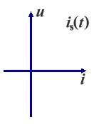 | 3)理想電流源的電壓、電流關(guān)系 (1)電流源的輸出電流由電源本身決定,與外電路無關(guān);與它兩端電壓方向、大小無關(guān) (2)電流源兩端的電壓由其本身輸出電流及外部電路共同決定。 伏安關(guān)系曲線如右圖示 |