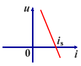 (2)實際電流源的電壓、電流關(guān)系 ![]() 即:實際電流源的輸出電流在一定范圍內(nèi)隨著端電壓的增大而逐漸下降。因此,一個好的電流源的內(nèi)阻 |
