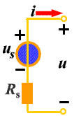 | 考慮實際電壓源有損耗,其電路模型用理想電壓源和電阻的串聯(lián)組合表示,這個電阻稱為電壓源的內(nèi)阻。 |