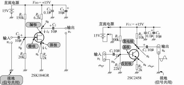 實際上幾乎是完全相同的,只有一點差別,這就是雙極晶體管的基極發射極間電壓BE與FET的柵極源極間電壓GS在電壓、極性上有差別。