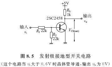 但是開關(guān)電路,如圖8.2所示是一種計(jì)數(shù)地接通/斷開晶體管的集電極發(fā)射極間的電流作為開關(guān)使用的電路。