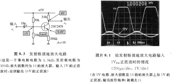 圖8.3是電壓增益(放大倍數(shù))Av=10的發(fā)射極接地型放大電路。