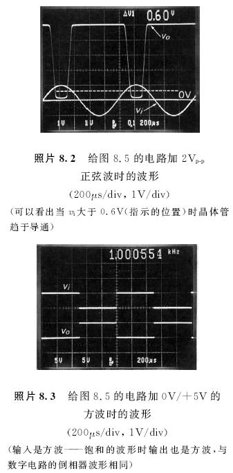 從照片8.3看到的輸入輸出波形簡直就是數(shù)字電路中倒相器(NOT電路)的輸入輸出波形。所以這個(gè)電路可以作為倒相器使用。但是,