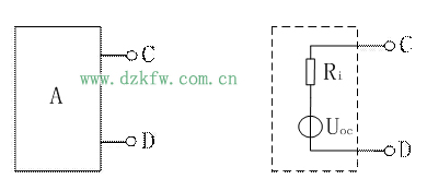 1、對任何一個線性含源一端口網絡,如圖1(a),根據戴維南定理,可以用圖l(b)所示電路代替。其等效條件是:Uoc是含源一端口網絡C、D兩端的開路電壓;電阻Ri是把含源一端口網絡化成無源網絡后的入端電阻。