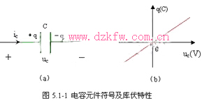 本章討論的電容元件 ,是在忽略了介質損耗和漏電流等因素之后的理想化模型。電容元件( capacitor )的電路符號如圖 5.1-1 ( a )所示。庫伏特性為