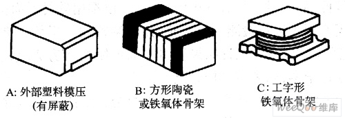 A型是內部有骨架繞線,外部有磁性材料屏蔽,經塑料模壓封裝的結構;B型是用長方形骨架繞線而成(骨架有陶瓷骨架或鐵氧體骨架),兩端 頭供焊接用;C型為工字形陶瓷、鋁或鐵氧體骨架,焊接部分在骨架底部。