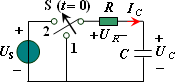 t < 0時,開關S在位置1,處于穩態,即:uC(0-) = 0。