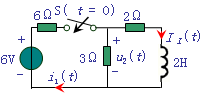 例6. 如圖所示電路,已知t < 0時電路處于穩態,t = 0時開關S閉合。求t > 0時的L、i1、u2