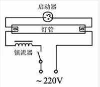 為了有效地分析電路,我們常常用理想元件來代替實際電路元器件而組成理想電路,故而叫作電路模型。比如日光燈的線路圖: