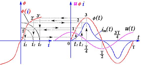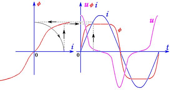 波形畸變由φ-i曲線的非線性所引起,其實質是由于磁飽和所造成。