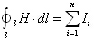 設空間有n根載流導體,導體中的電流分別為I1,I2,……,In則沿任意可包含所有這些導體的閉合路徑l,磁場強度H的線積分等于這些導體電流的代數和,即