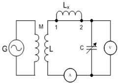 然后去掉1、2之間的短路線,將Lx按入回路,保持信號源頻率不變,調節(jié)C至C2時,回路再次諧振,此時