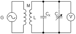 把被測電容Cx接好,調節(jié)振蕩源頻率f,使電壓表指示最大,則被測電容為![]()