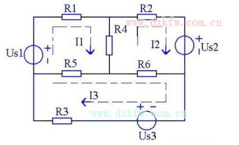 分別在網孔1、2、3中流動,網孔電流的參考方向如圖3-2-1所示。