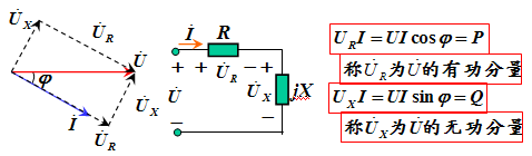 感性負(fù)載: φ > 0,Q > 0,表示網(wǎng)絡(luò)吸收無(wú)功功率;