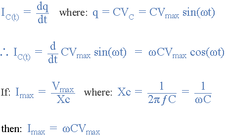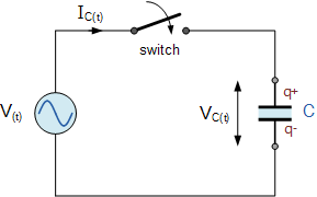 在包含純電容的交流電路中,電流(電子流)流入電容器給出如下:
