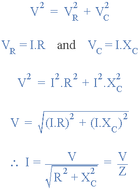這意味著流入電容器的電流仍將導(dǎo)通電壓,但是數(shù)量小于90 o 取決于值 R 和 C 給出一個(gè)相量和,它們之間的相應(yīng)相位角由希臘符號(hào)phi,Φ給出。
