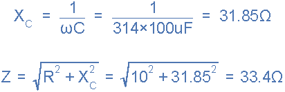 容抗和電路阻抗計(jì)算如下: