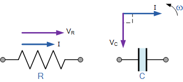 為了能夠產(chǎn)生AC電容的矢量圖,參考或公共分量必須是找到。在串聯(lián)AC電路中,電流是常見(jiàn)的,因此可以用作參考源,因?yàn)橄嗤碾娏髁鬟^(guò)電阻并流入電容。純電阻和純電容的單個(gè)矢量圖如下: