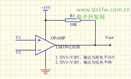 即:當(dāng)V1大于V2時(shí),Vout輸出高電平,多高嗎?等于15V;