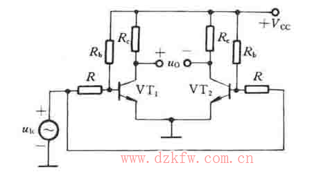 電路見上圖(b)。由于只從三極管VT1的集電極輸出,而另一管VT2集電極的電壓變化沒有輸出,所以△uO約為雙端輸出時的一半,