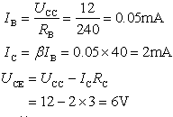 【例2】共發射極基本放大電路如圖所示,已知UCC=12V ,RC =3KΩ,RL=3KΩ,RA=24KΩ晶體管的β=40 。