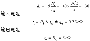 畫出微變等效電路以后,就可以用求解線性電路的方法計算放大器的主要性能指標,包括電壓放大倍數 、輸入電阻ri和 輸出電阻ro