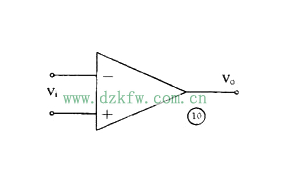 集成運算放大器是一種把多級直流放大器做在一個集成片上,只要在外部接少量元件就能完成各種功能的器件。因為它早期是用在模擬計算機中做加法器、乘法器用的,所以叫做運算放大器。它有十多個引腳,一般都用有 3 個端子的三角形符號表示,如圖 10 。它有兩個輸入端、 1 個輸出端,上面那個輸入端叫做反相輸入端,用“ — ”作標記;下面的叫同相輸入端,用“+”作標記。