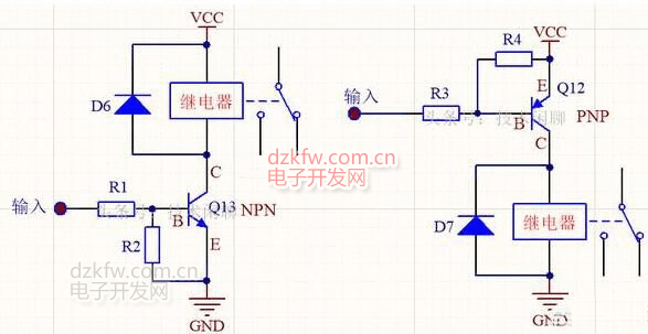 理論上NPN三極管和PNP三極管都可以作為開關管驅動繼電器,但是為什么絕大部分設計都喜歡使用NPN三極管驅動繼電器呢?下面很多人的回答并沒有說到點子上。因為使用NPN三極管驅動簡單,在很多場合下若使用PNP三極管驅動繼電器并不是這么簡單可以實現的。
