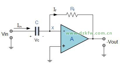 差分器的輸入信號被施加到電容器。電容器阻止任何直流成分,因此沒有電流流向放大器的求和點X,導致輸出電壓為零。該電容器僅允許交流型輸入電壓的變化通過,其頻率取決于輸入信號的變化率。