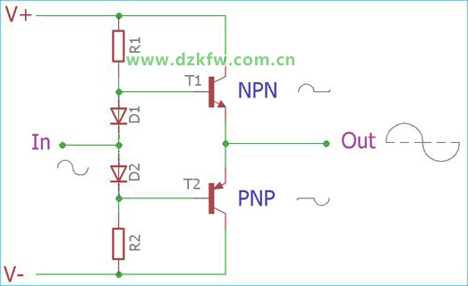 但在這種配置中,效率會隨著器件線性度的降低而降低。效率仍然高于典型 A 類放大器的效率,但低于 B 類放大器系統(tǒng)。此外,需要仔細(xì)選擇具有完全相同額定值的二極管,并且需要放置在盡可能靠近輸出設(shè)備的位置。在某些電路結(jié)構(gòu)中,設(shè)計人員傾向于添加小值電阻器來為器件提供穩(wěn)定的靜態(tài)電流,從而最大限度地減少輸出端的失真。