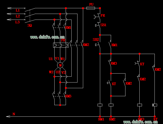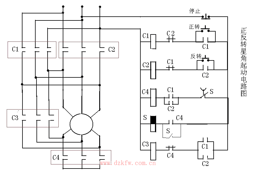 星三角啟動電機正反轉(zhuǎn)電路圖