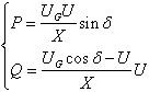 為線路始末兩端電壓的相位差,比較以上兩式,可得: