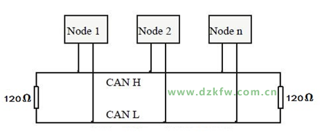 CAN總線網絡主要掛在CAN_H和CAN_L,各個節點通過這兩條線實現信號的串行差分傳輸,為了避免信號的反射和干擾,還需要在CAN_H和CAN_L之間接上120歐姆的終端電阻。為什么是120Ω,因為電纜的特性阻抗為120Ω,為了模擬無限遠的傳輸線。