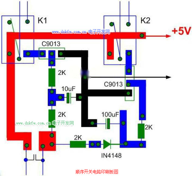 有關順序開關的電路原理圖,包括了順序開關電路圖,繼電器順序延繼電器順序開關原理圖時 斷電開關原理圖,以及一例順序開關電路印刷板圖,供大家學習參考。