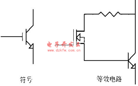 IGBT即雙極型絕緣效應管,符號及等效電路圖見圖11.1,其開關頻率在20KHZ~30KHZ之間。但它可以通過大電流(100A以上),而且由于外封裝引腳間距大,爬電距離大,能抵御環境高壓的影響,安全可靠。