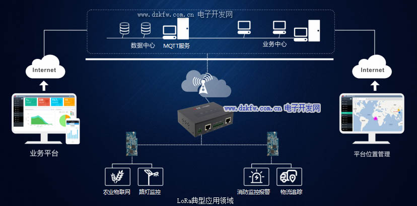 通過LoRa無線從LoRa網絡中的LoRa設備獲取數據,并通過WiFi/以太網/3G/4G等處理/發送到IP網絡中的IoT服務器。