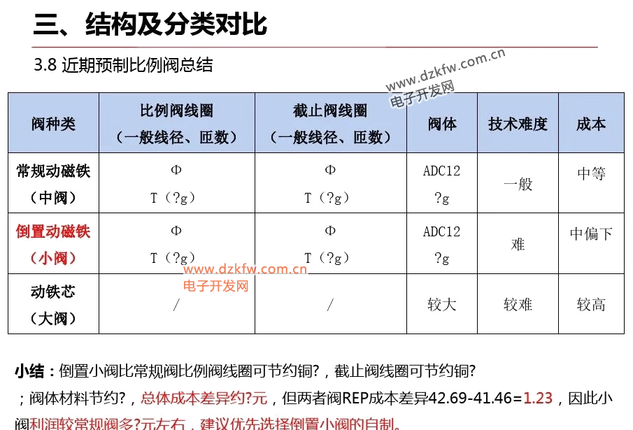 備注:根據(jù)現(xiàn)有技術(shù),常規(guī)動磁鐵比例閥與倒置動磁鐵小比例閥相對容易實(shí)現(xiàn)自制,其他比例閥作為技術(shù)研究儲備。