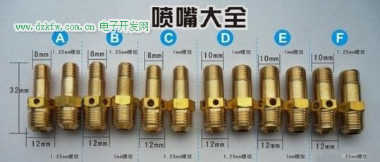 7.噴嘴:一般用黃銅加工,孔徑大小根據(jù)所要求的熱負(fù)荷大小和氣種類(lèi)別來(lái)決定,在零點(diǎn)幾毫米到4mm左右,液化氣用孔徑1mm左右,天然氣用1.5~1.9mm,人工煤氣用2.5~3.5mm,當(dāng)燃?xì)夥N類(lèi)改變時(shí)需要更換噴嘴才可正常燃燒。還有種可調(diào)噴嘴,內(nèi)有可先后移動(dòng)的針形閥,通過(guò)調(diào)節(jié)針形閥來(lái)改變噴嘴的有效流通面積,以適應(yīng)不同種類(lèi)的燃?xì)猓褂貌黄毡椤?/P>