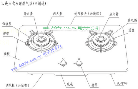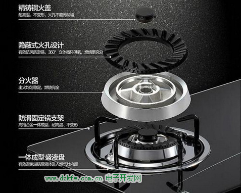 點(diǎn)火裝置:主要功能是點(diǎn)燃燃燒器(點(diǎn)火方式一般分為兩種:壓電式和脈沖式,前者多用于臺(tái)式灶后者多用于嵌入式灶)