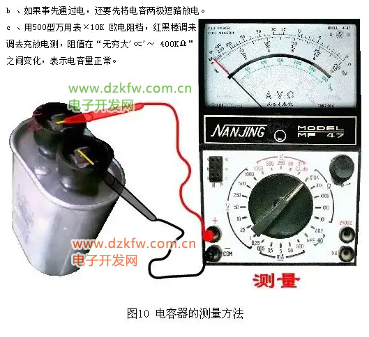 b 、如果事先通過電,還要先將電容兩極短路放電。