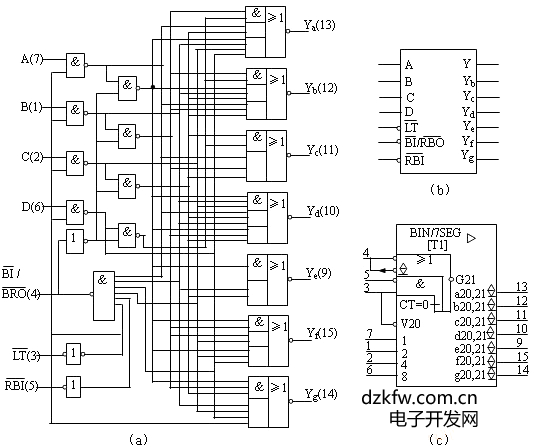 74LS48(a)邏輯圖(b)方框圖(c)符號圖