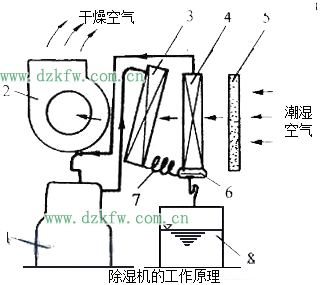 其實所有除濕機的工作原理都是將潮濕的空氣中的水分分離出來,排出比較干燥的空氣,從而達到干燥空氣、除濕的功能。